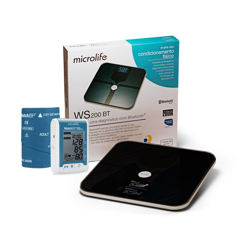 A balança de bioimpedância Microlife ajuda a verificar e analisar sua saúde. Possui sensores capazes de calcular automaticamente a gordura corporal e percentagem de água que em função de sua altura, idade e sexo, fazendo com que o monitoramento do seu estado nutricional tenha mais qualidade e seja prático. - Balança de bioimpedância para diagnóstico corporal com Bluetooth- Microlife - Plataforma de vidro com eletrodos ITO para uma melhor leitura; - Avaliação do condicionamento físico e diagnóstico da composição corporal: Mede peso, gordura, água, massa muscular e óssea, IMC, com taxa de metabolismo ativa e basal; - Possui conectividade via bluetooth ao App Microlife Connected Health + onde os dados são automaticamente transferidos, fazendo com que a verificação dos resultados seja mais prática e completa; - Possui desligamento automático, evitando preocupação em deixá-la ligada e desperdício de baterias; - Possui capacidade de 180 kg; -